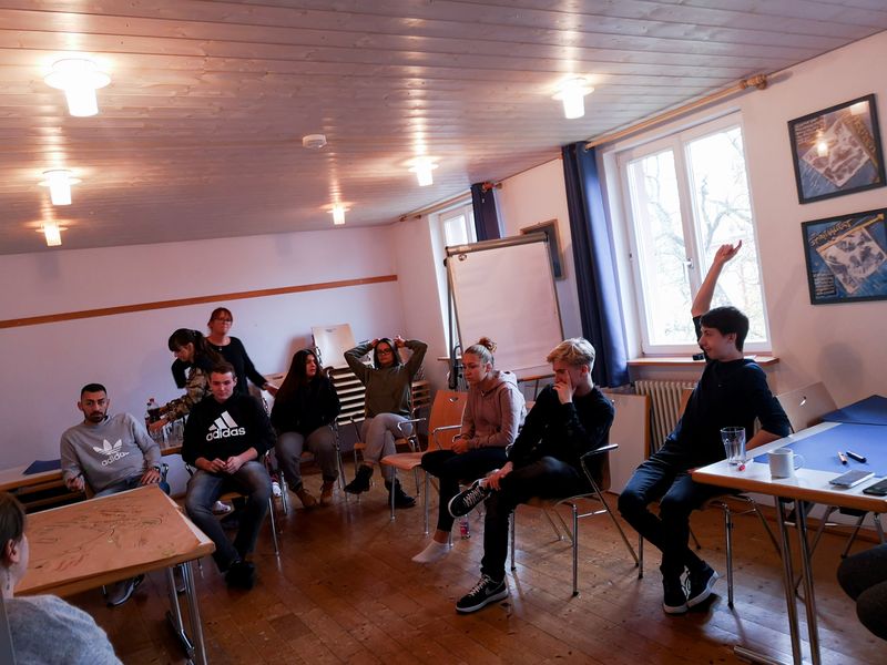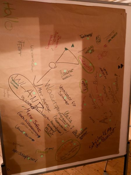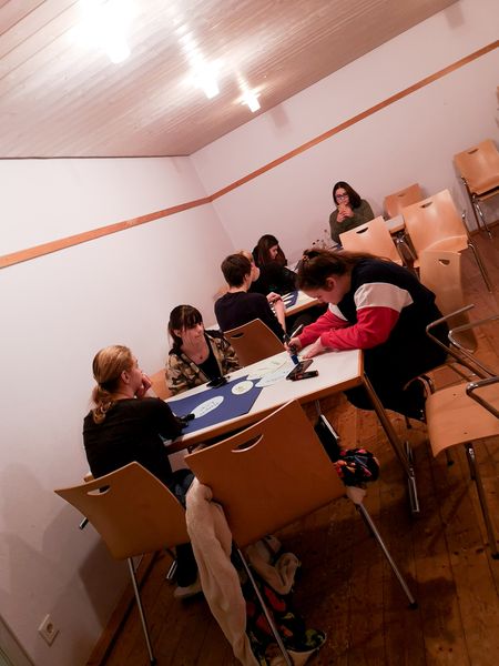 Der Freitag, Tag zwei, begann mit einem ausgiebigen Frühstück, bestehend aus Rührei, Sucuk oder auch ganz normalen Brötchen. Die Arbeit blieb aber nicht aus, weitere Vorschläge wurden gesammelt, Ideen ergänzt und dann gemeinsam besprochen; schnell entstanden kleinere Diskussionen mit produktiven Ergebnissen, die dann schriftlich festgehalten wurden. Um nicht zu verhungern, war es nun an der Zeit, gemeinsam das Mittagessen vorzubereiten und erneut zusammen zu essen. Man beeilte sich, dann konnten die einzelnen Gruppen auf die verschiedenen Themen eingehen, die Ergebnisse wurden anschließend zusammengetragen. Wie auch schon am Tag zuvor endete der Freitag mit ein paar Spielen, viel Musik und viel Spaß (dank der Karaoke-Session mit Frau Huber und Frau Neumann). Am letzten Tag konnten alle ausschlafen, man frühstückte zusammen, die Auswahl war groß. Um dann aber alles wieder ordentlich zu verlassen, musste noch gemeinsam geputzt werden. Nach getaner Arbeit wurde dann auch schon wieder die Heimfahrt angetreten.