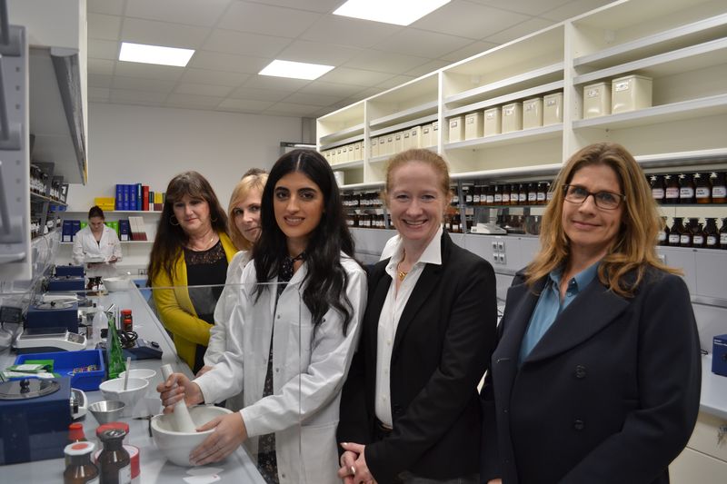 „Umso wichtiger ist es, einen hohen Qualitätsstandard in der Ausbildung zur PTA zu gewährleisten“, betonte der Schulleiter Herr Schneider bei der Begehung des Galenik-Labors. In diesen Räumlichkeiten wird über die geeignete Darreichungsform eines Wirkstoffes entschieden: Ob als Tablette, Salbe oder als Spritze – all diese Überlegungen sind nötig, um ein Arzneimittel effektiv am Patienten einsetzen zu können.