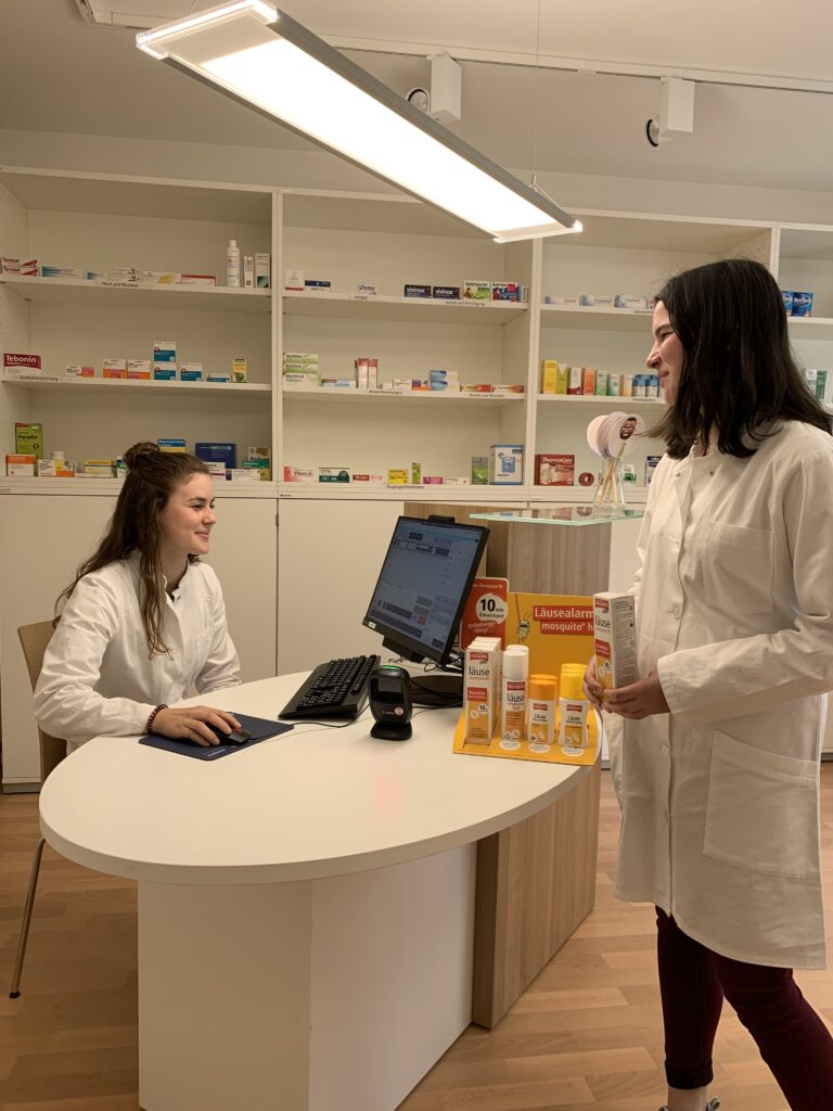 Im Mittelpunkt des Arbeitsalltags einer/eines PTA in der öffentlichen Apotheke steht das Beratungsgespräch, das in der Übungsapotheke nun unter fast realen Bedingungen von den Schülern durchgeführt werden kann.